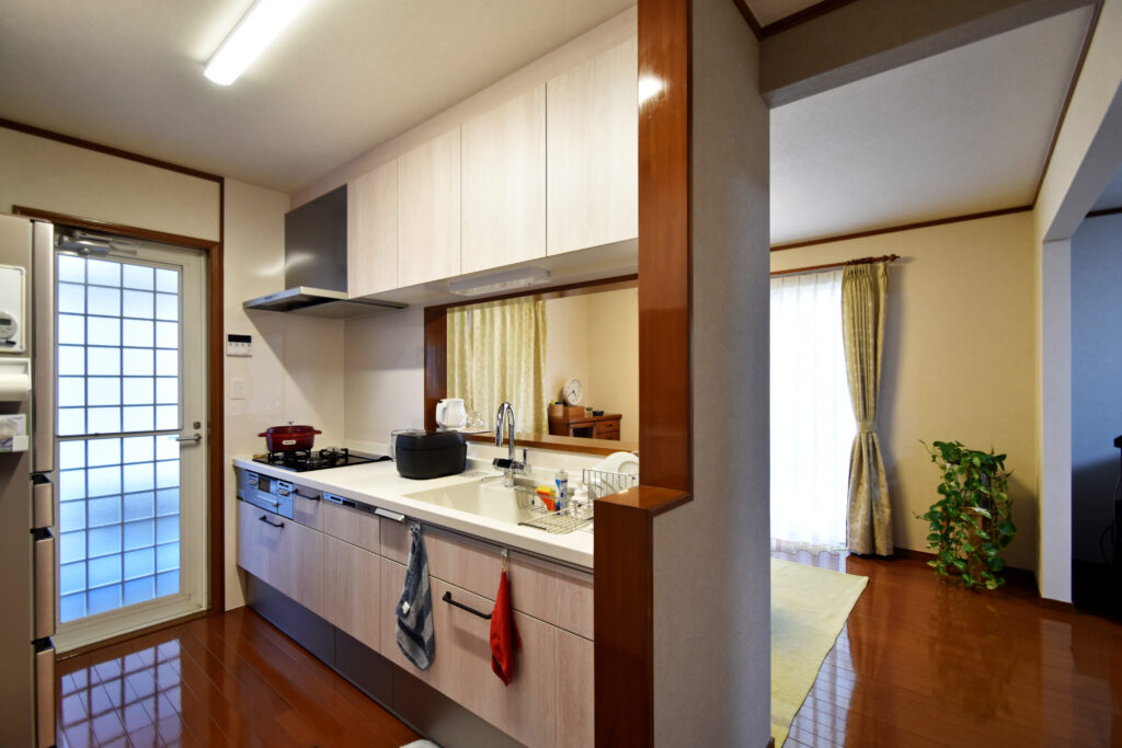 キッチンから見えるリビングの景色も明るい印象に変わります。